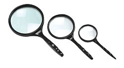 HAND HELD MAGNIFIES, TRIPOD STAND MAGNIFIERS IN VARIOUS SIZES ARE AVAILABLE.